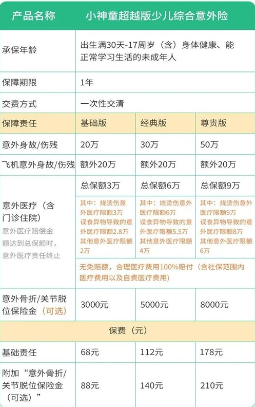 小神童2023是平安财险旗下一款专为未成年人群设计的意外险,该产品意外保障全面,且意外医疗实用性高,另外可提供三个保障计划灵活选。