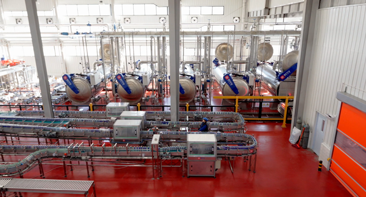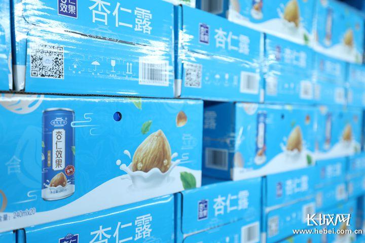刚刚生产出来的杏仁露正在等待发往南方市场。长城网记者 高航 摄