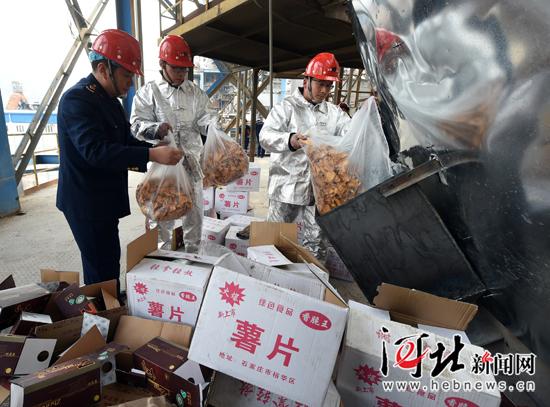 3月9日,石家庄市鹿泉区市场监管局在河北金隅鼎鑫水泥有限公司,利用水泥窑协同处置技术,对前期收缴的货值30余万元的假冒伪劣食品进行无害化销毁。