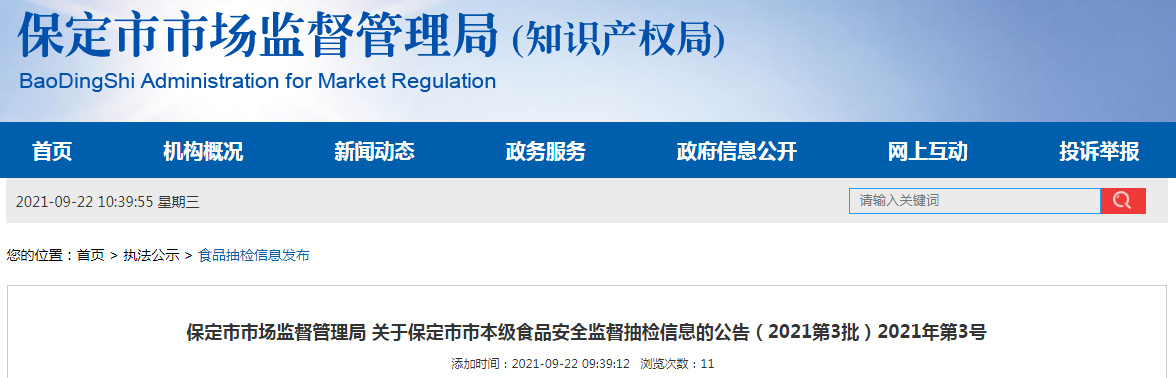 中国质量新闻网讯 2021年9月22日,河北省保定市市场监督管理局网站发布关于保定市市本级食品安全监督抽检信息的公告(2021第3批)2021年第3号。本次发布的监督抽检信息涉及20大类,共抽检样品277批次,全部合格。