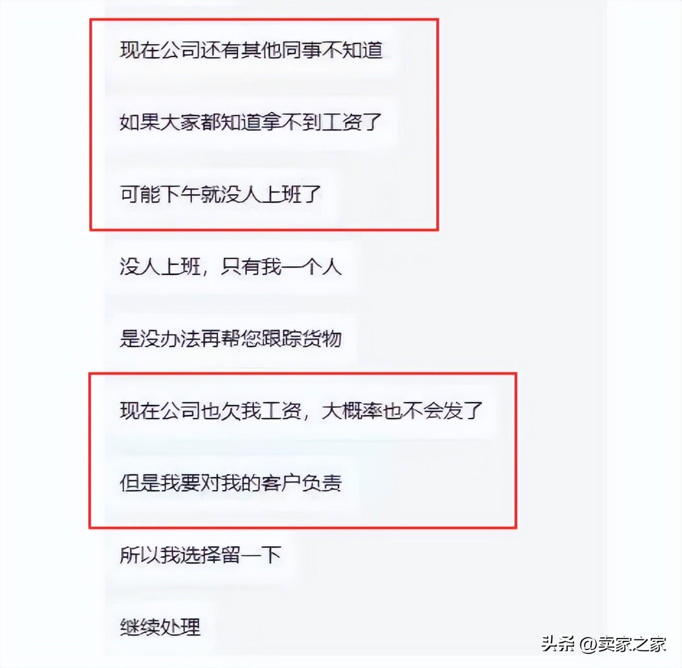除了卖家的货出不来外,同行的债务,其员工的薪资也被扣押。