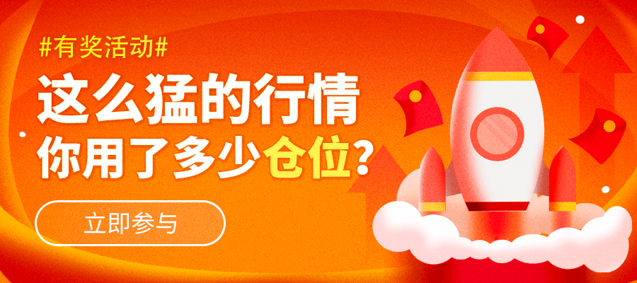 打开天天基金APP→九宫格“社区”→基金吧“发现”,下拉至热门活动栏,点击“#有奖活动# 这么猛的行情,你用了多少仓位?”,即可参与哦!